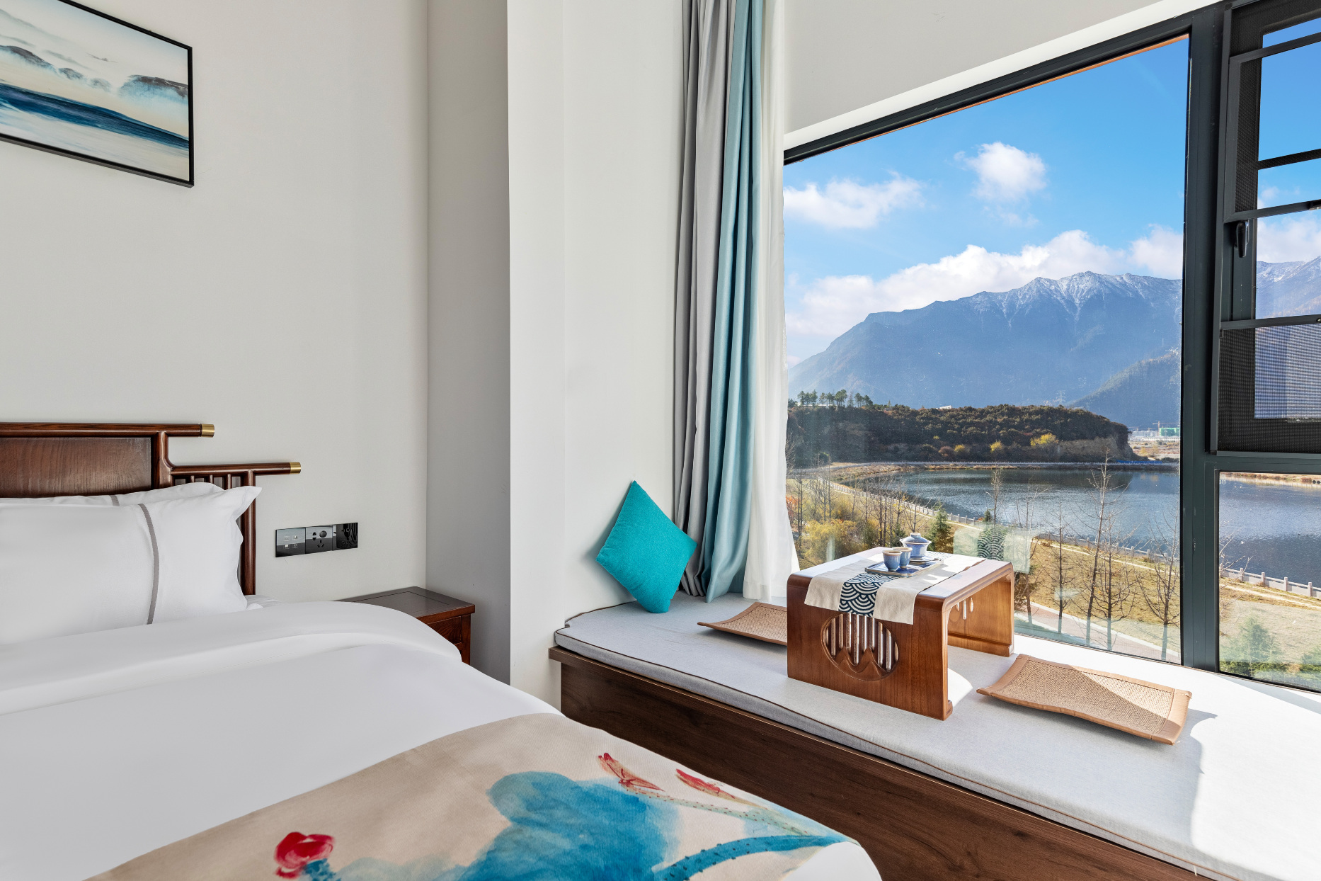 林芝不鸣庭院酒店,静卧在蜿蜒流淌的尼洋河畔,日照金山如诗如画般展现在眼前,将自然与宁静完美融合。酒店周边交通便捷,无论是探索林芝的壮丽风光,还是前往城市的热闹街区,皆可轻松抵达。酒店特设观景露台,集烧烤娱乐与露天影院于一身,在璀璨星空下,与挚友共赏电影,品花赏月,围炉烹茶,尽享悠然自得与浪漫情怀。客房内,我们为您精心准备了高档定制床品,选用乌金与白蜡木打造床架,古朴雅致,细节处彰显匠心。全套ARROW智能衞浴设施与全屋软水处理系统,让您的肌肤与衣物得到最温柔的呵护。全屋地暖、智能门锁、挂烫机、小米音响、加湿器等设施一应俱全,确保您在任何季节都能感受到如春般的温馨舒适。此外,酒店还设有免费图书馆、花园院落和茶室,为您提供一片静谧的空间,让您在闲暇之余,沉浸于书香、品味自然,享受一段远离喧嚣的时光。无论您是追求浪漫的度假体验,还是渴望与自然亲近的静谧时光,林芝不鸣庭院酒店都将以贴心的服务与舒适的设施,为您打造一段难忘的旅程。期待与您相遇,共赴一场心灵与自然的邂逅。