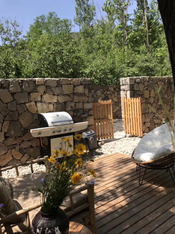 度假袋鼠屋里都是大大的落地窗, 迎着阳光, 客厅里古朴的气息扑面而来, 一张慵懒的麻布沙发, 一个藤编小几, 让人轻易的窝进这舒适里。屋里的一花一木, 都透着主人的用心和品味, 一丝不苟和慵懒的气质混在一起, 碰撞出这里一切的美好。 全套意大利Acca kappa洗漱用品, 造价15万的Hansgrohe浴缸, 舒适的鹅绒被子…给您独特山居体验。院子里有烤炉, 独门独院的设计, 给您及朋友提供私密的度假空间, 在院子里开个BBQ,朋友派对, 与星光干杯~ 美好的住宿体验。 附近着名景点黄花溪、泰和寺、仰天山、胡林谷、井塘古村、青州古城、云门山、驼山等。从酒店出发15分钟即可到达黄花溪、井塘古镇等着名景区。除了着名的旅游景区外,还有青州蜜桃、柿子、柿饼、山楂、杏仁、核桃、小米、山鸡蛋、韭花酱等村里特产。