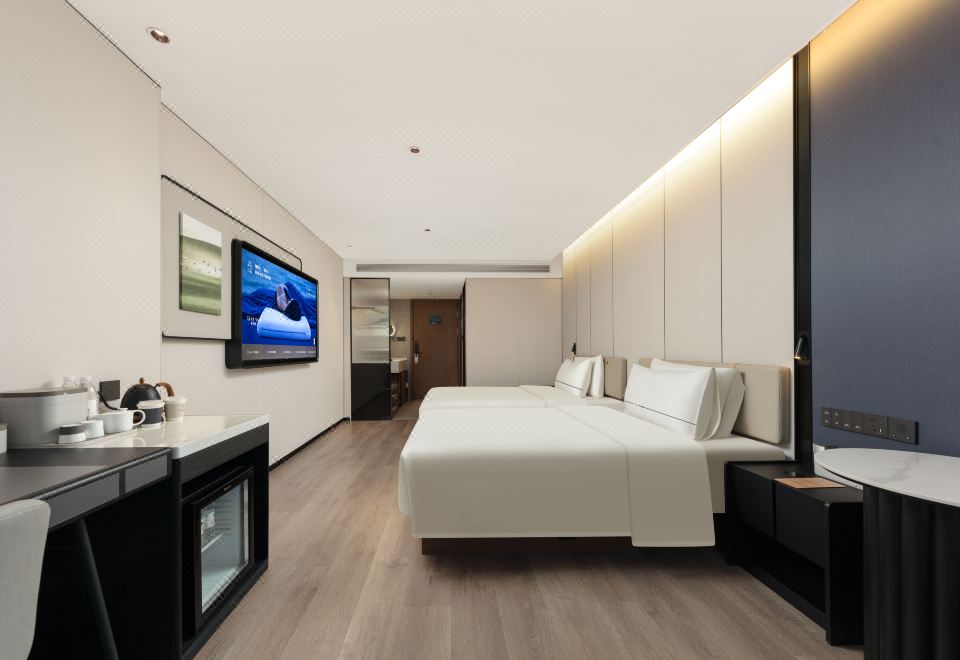 尊享双床房-【全景落地窗+智能客控+65寸智能投屏电视+小冰箱】