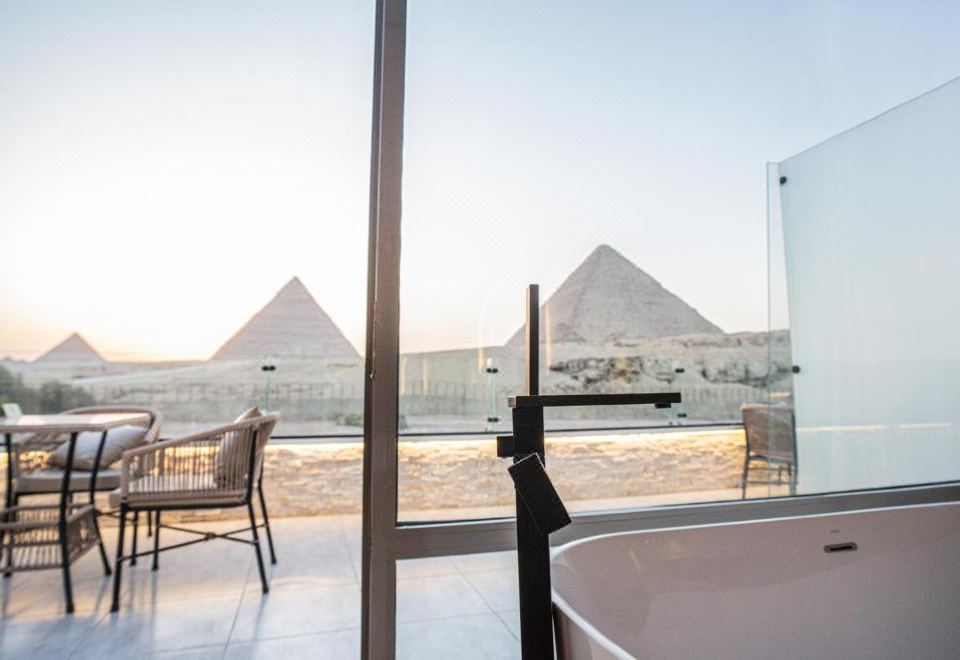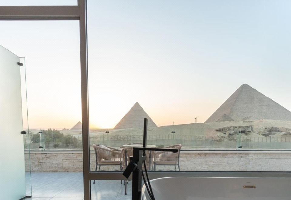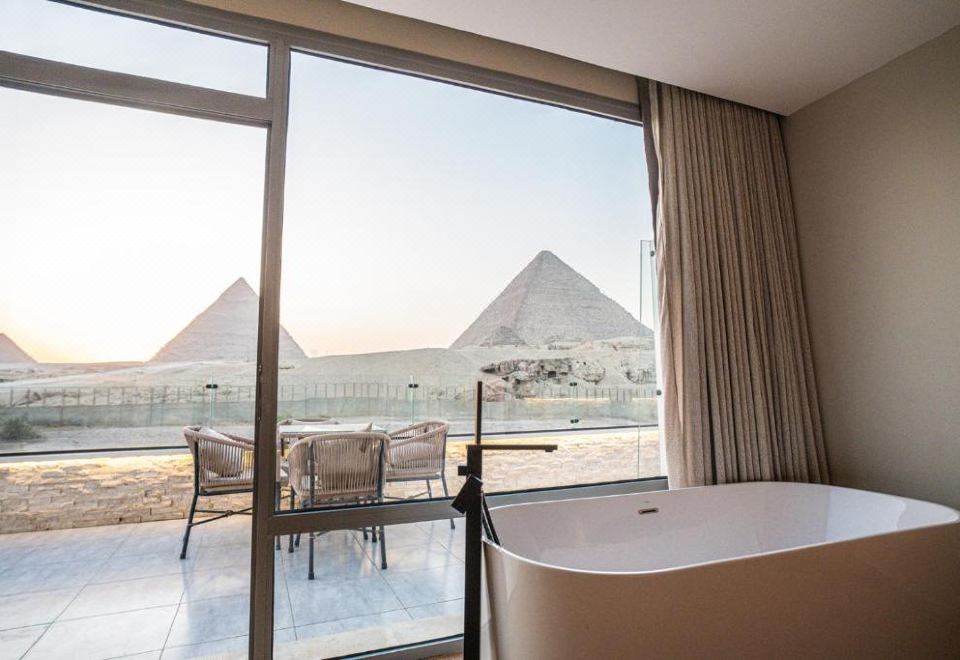 带全景金字塔景和浴缸的高级房